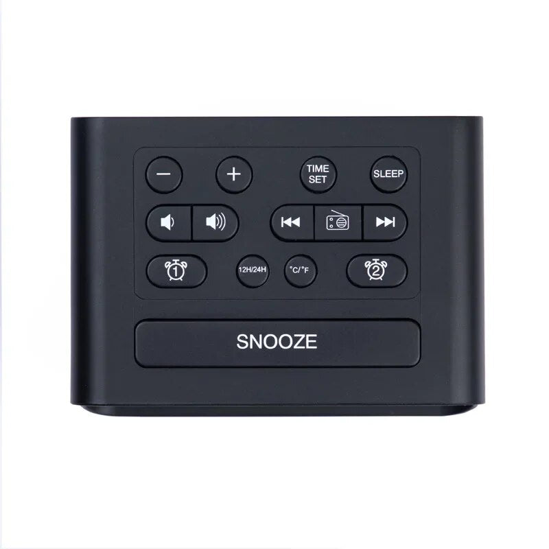Forestil deg å våkne og umiddelbart se nøyaktig tid uten anstrengelse. Vår digitale klokkeradio er utstyrt med en høyoppløselig LED-skjerm som viser klokkeslettet i store, klare sifre. Dette er spesielt praktisk for deg som har nedsatt syn, eller bare foretrekker en uanstrengt avlesning fra avstand. I tillegg til klokkeslettet viser skjermen også dag og temperatur, slik at du har all viktig informasjon samlet på ett sted. Juster lysstyrken etter dine preferanser for en perfekt visning, enten det er midt på dagen eller dypt inn i natten.