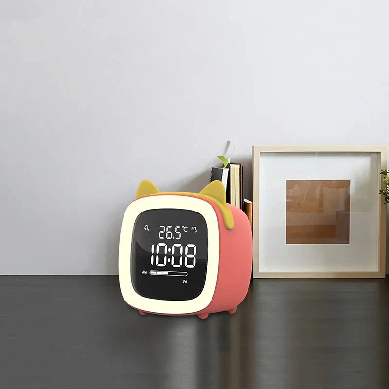 Ikke vent med å oppgradere morgenrutinen din. Denne digitale vekkerklokke katt med nattlys er den perfekte blandingen av funksjonalitet og sjarm.
