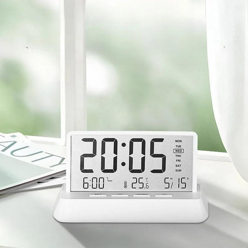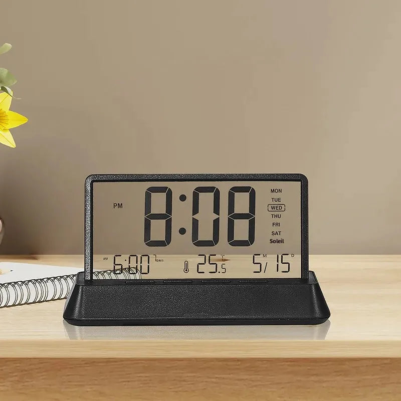Opplev eleganse og funksjonalitet med vår Digital vekkerklokke med temperaturvisning. Designet for å gjøre oppvåkningen din mer behagelig og starte dagen med stil, kombinerer den raffinert design med praktisk bruk.