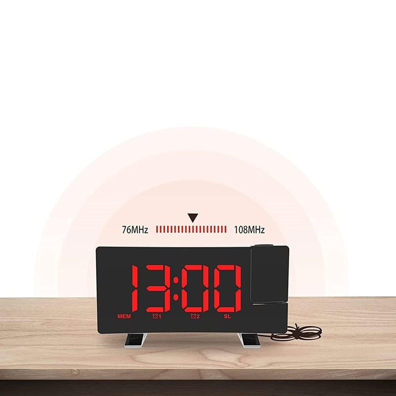 Gjør livet enklere med denne klokkeradioen med rød projeksjon av klokken