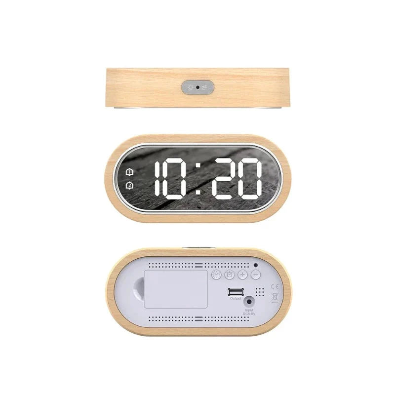 Din Nye LED Vekkerklokke i Tre med Speil Venter på Deg