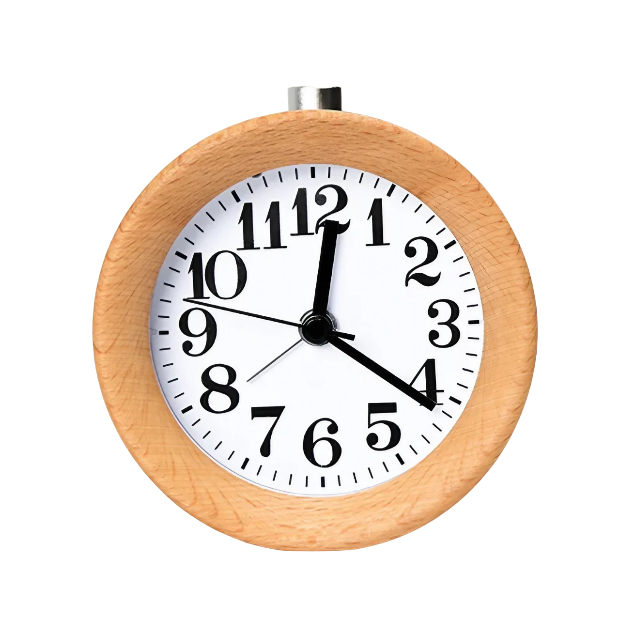 Opplev eleganse og funksjonalitet med vår Rund analog vekkerklokke i lyst tre. Designet for å gjøre oppvåkningen din mer behagelig og starte dagen med stil, kombinerer den raffinert design med praktisk bruk.