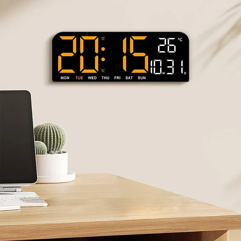 Opplev eleganse og funksjonalitet med vår Stor LED vekkerklokke for vegg. Designet for å gjøre oppvåkningen din mer behagelig og starte dagen med stil, kombinerer den raffinert design med praktisk bruk.